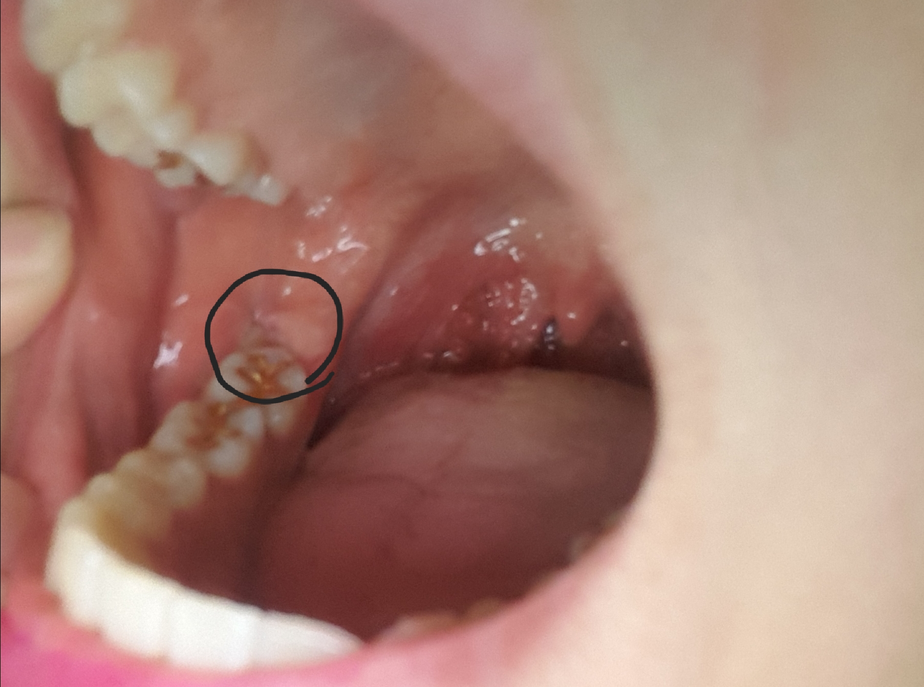 사랑니가 자라고 있는 자리인데 얼마전 사랑니가 자라는 부분에 염증이생겨 남모를 이앓이를 했습니다.