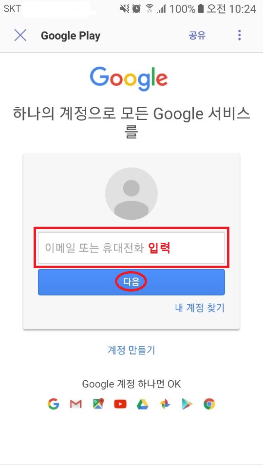 어플 다운이 안되면, gmail 로그인 후, 시도해보시기 바랍니다.