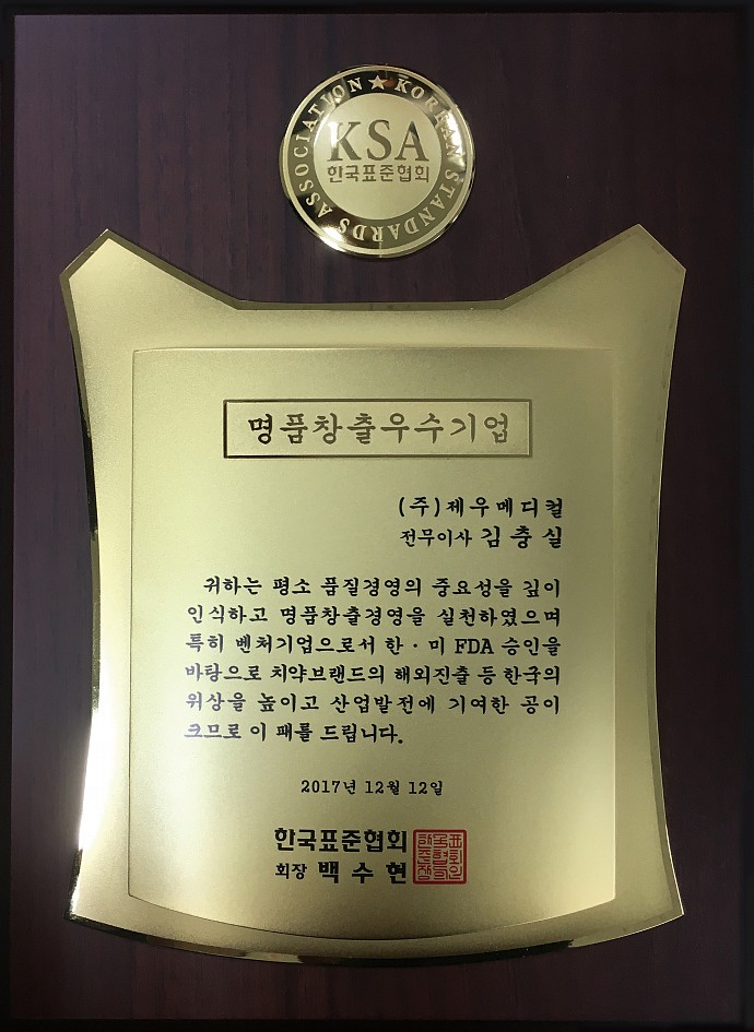 저희 제우메디컬이 KSA 한국표준협회로부터