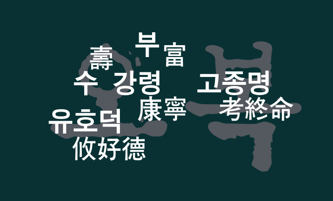 건강하고 마음이 편안함) 유호덕(攸好德:어진 덕을 닦음) 고종명(考終命:하늘이 내린 명대로 살다가