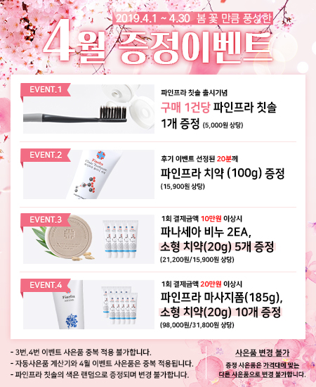4. 1회 결제금액 20만원 이상시 파나세아 마사지폼 1ea, 소형치약(20g) 10ea 증정