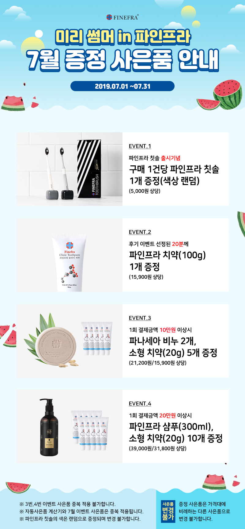파인프라와 여름을 준비해보세요. 7월의 증정 사은품 안내드립니다.
