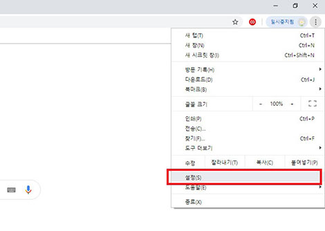 크롬 브라우저를 실행 후 그림에서와 같이 오른쪽 상단에 점(3개) 모양의 아이콘을 클릭해주세요.