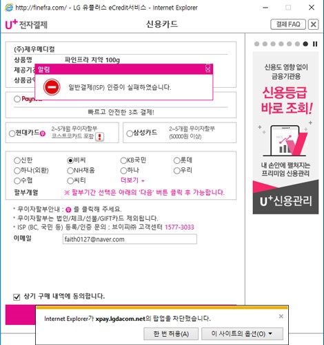 인터넷 브라우저를 사용하여 결제시 팝업설정에 의해서 결제가 원활히 진행되지 않는 경우