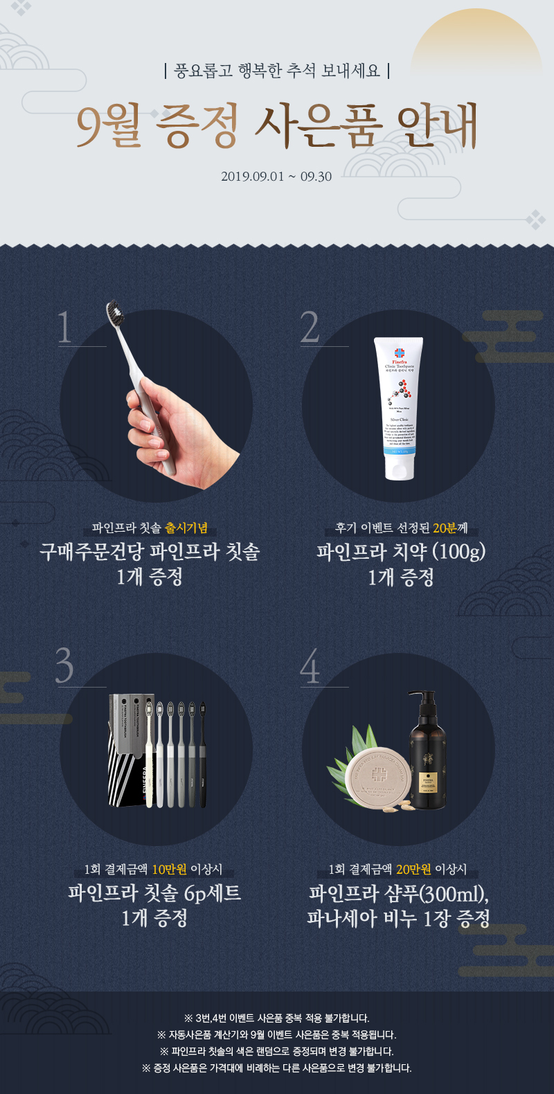 1.구매주문건당 파인프라 칫솔 1개 증정
