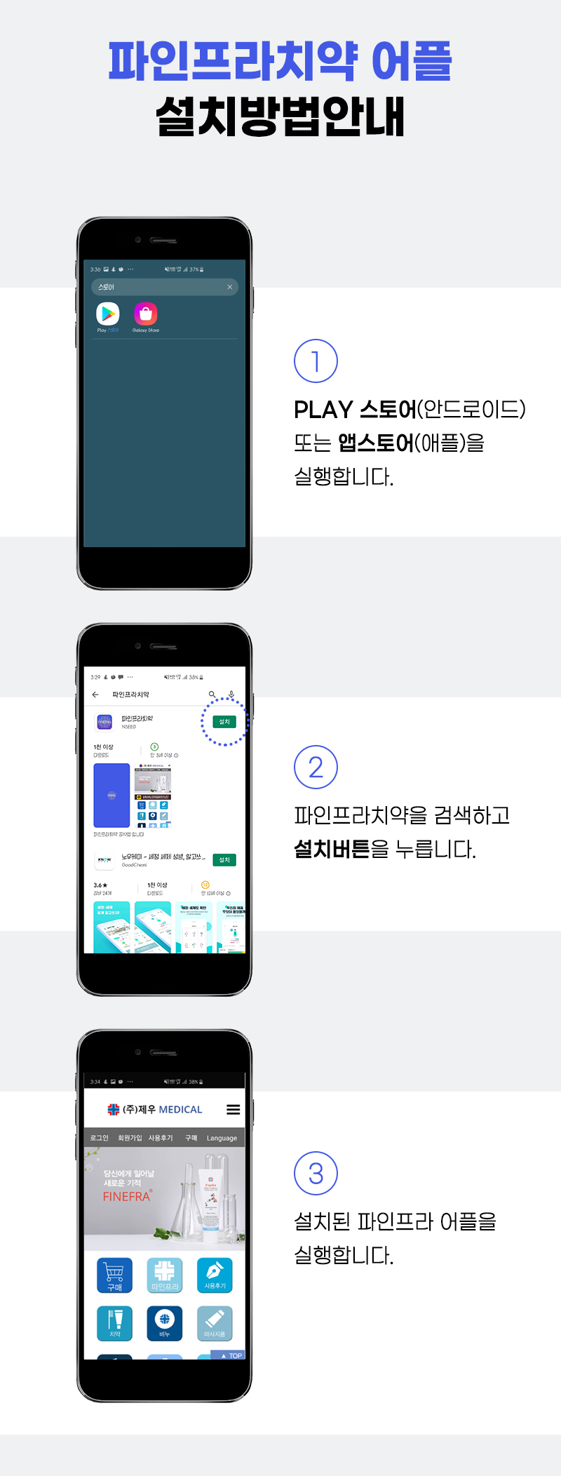 파인프라치약 모바일앱 다운로드 방법 안내