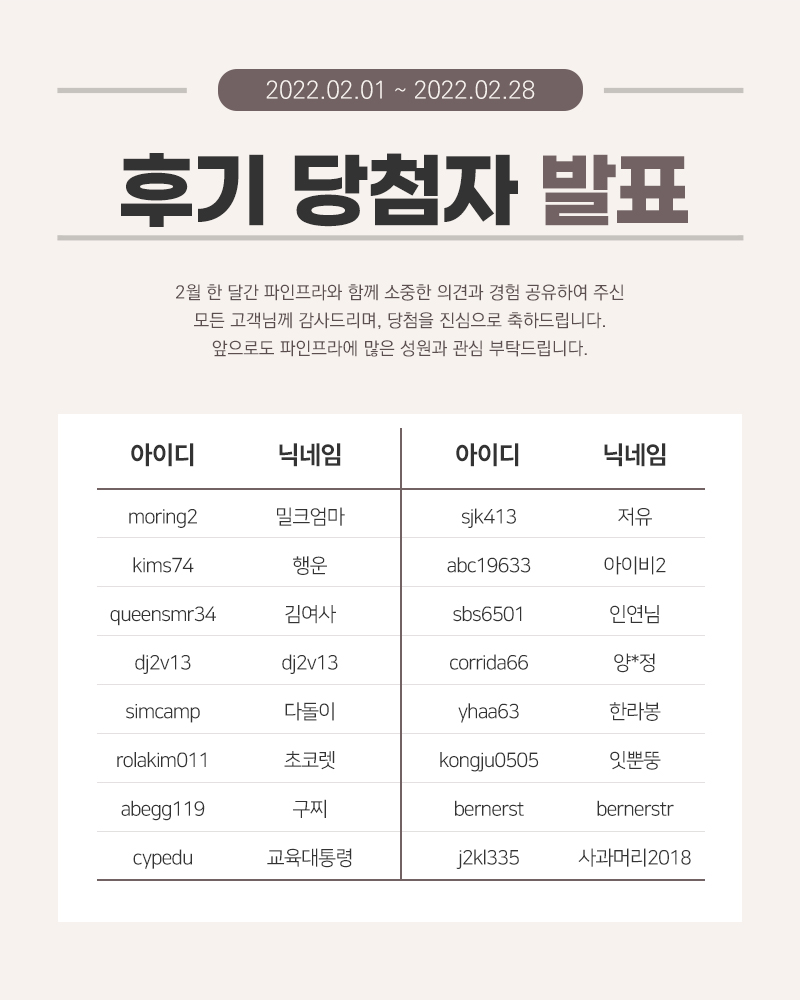 2022년 2월 후기 이벤트 당첨자 안내