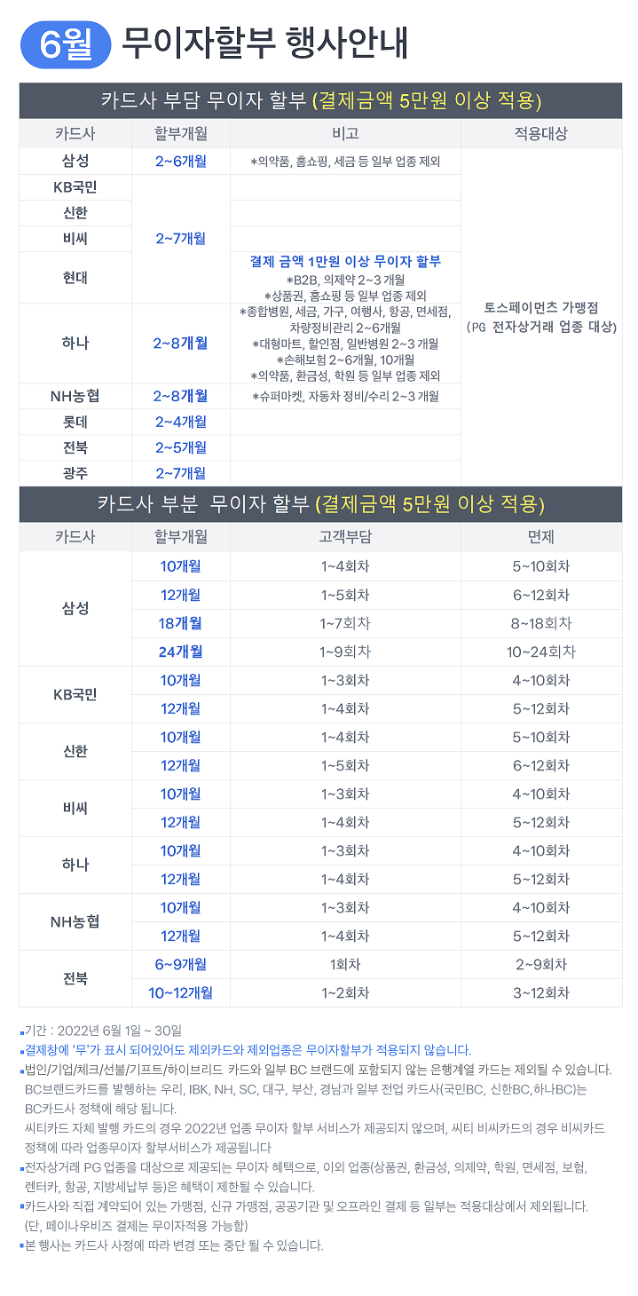 2022년 6월 무이자 할부 안내