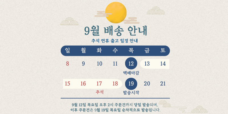 9월 12일 오후 2시 이후 주문 건은 9월 19일부터 순차적으로 발송될 예정입니다.