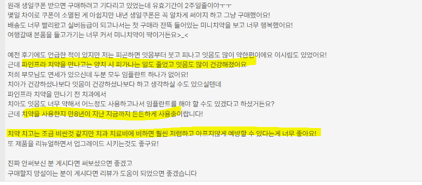 파인프라치약의 사용은 고객님의 잇몸건강에 좋은선택이 되실거라 자부합니다.