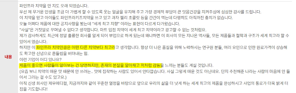 많은 분들께서 파인프라치약을 사용후 효과를 보고 있다고 후기를 통해 말씀하여주십니다.