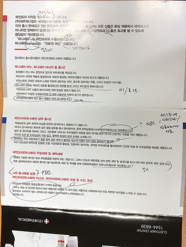 (전단에 수기로 표시한 부분외에도 몇몇부분이 더 있지만 첨부못했고, 홈페이지상에도 곳곳에...ㅠㅠ)