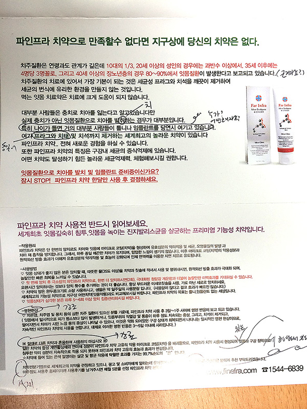 치약!!! 본제품이 물론 중요하겠지만, 부수적으로 제품을 광고하는 홈페이지나 홍보전단의 경우도