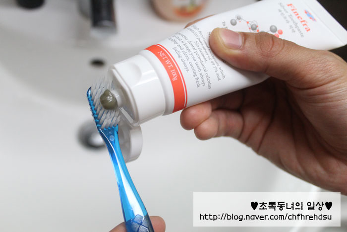 부드러운 칫솔에 칫솔을 미온수에 적셔 부드럽게 마사지하듯 치카치카~